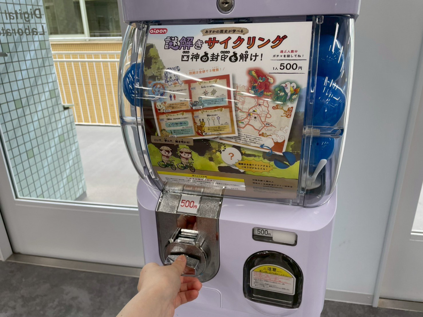②ガチャガチャ(aipon)を回してお題をゲット(500円/別途レンタサイクル費用が必要)